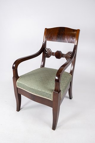 Set of 4 dining table chairs in oak with striped fabric from around the 1930s
