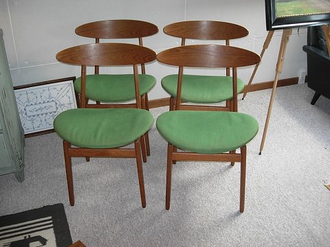 SoldSet of 4 Wishbone chairs, model CH24, designed by Hans J. Wegner and produced by Carl Hansen & Søn. The chairs are painted in a grey colour, which adds a modern expression to the classic design. The wishbone chair, was designed in 1949 and has been in production since 1950.