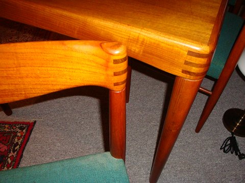 SoldTable and six chairs in teak wood furniture factory Bramminig of super quality table is to extract and with a record 5000 m2 showroom
