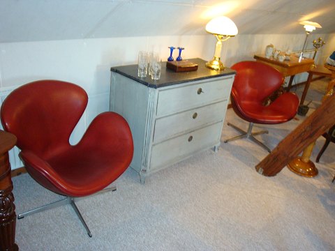 2 Swan chair designed by Arne Jacobsen with Indian red leather from 1963 in perfect condition 5000 m2 showroom