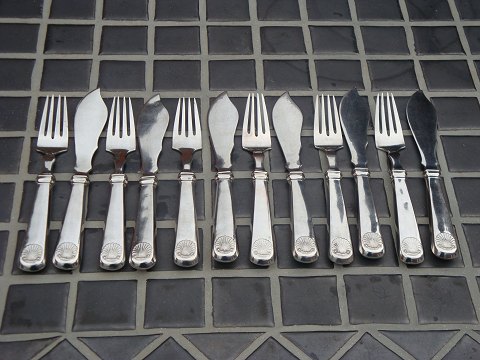 SoldFish cutlery for 6 people in hallmarked silver, scallop pattern.