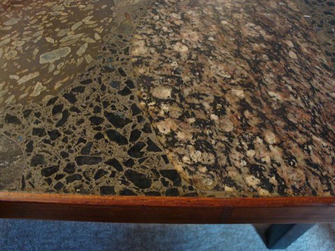 SolgtSofabord i palisander med smuk stenplade. Købt på den permanente i super kvalitet. 104*104*50 cm.
