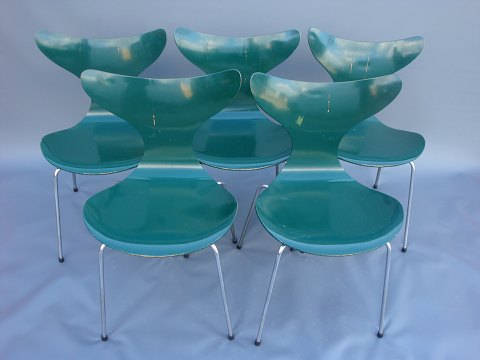 "Seagull" by Arne Jacobsen, 5 chairs, model 3108. Produced at Fritz Hansen in 1978. The chairs are with chromium-plated frame. 5000m2 showroom.