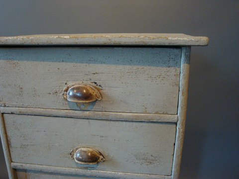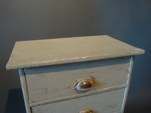 SoldGrey painted miniature chest of drawers - child dresser from the year 1880.