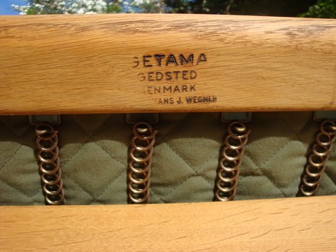 Sold3 seater sofa by Hans J. Wegner, model GE290 in oak with loose cushions. The sofa is manufactured at Getama and is in good condition.