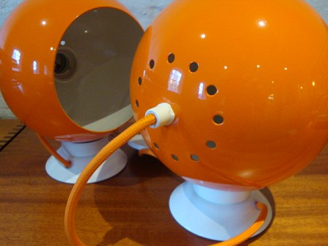 2 orange ball lamps for the wall in retro style. The lamps are in perfect condition and with orange fabric cable.