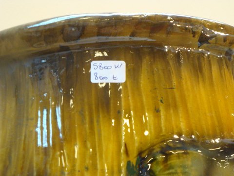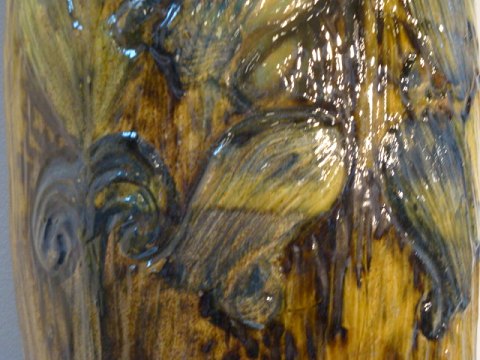 Unique floor vase in greenish colors.