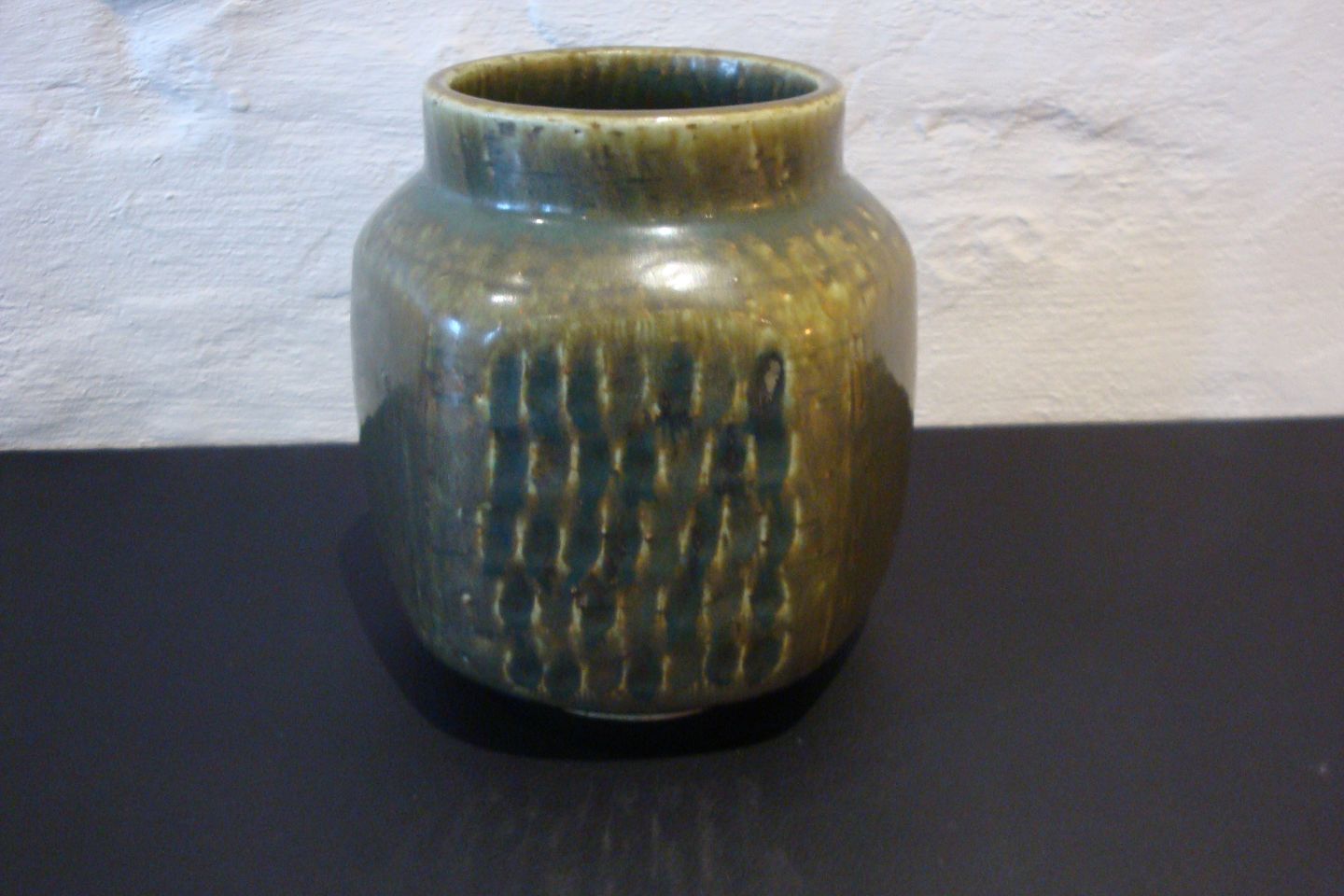 SoldJar / vase Saxbo No. 227 signed by Eva stær Nielsen. Height 16 cm Dia 15 cm, in perfect condition.