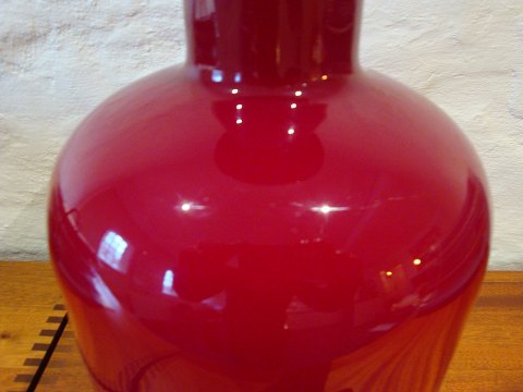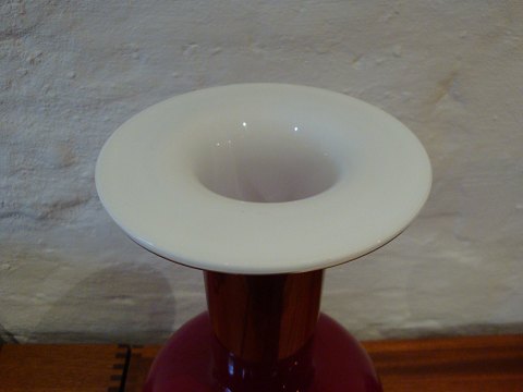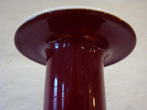 Floor Vase with two colored glass red on the outside and white on the inside from Holmegaard.