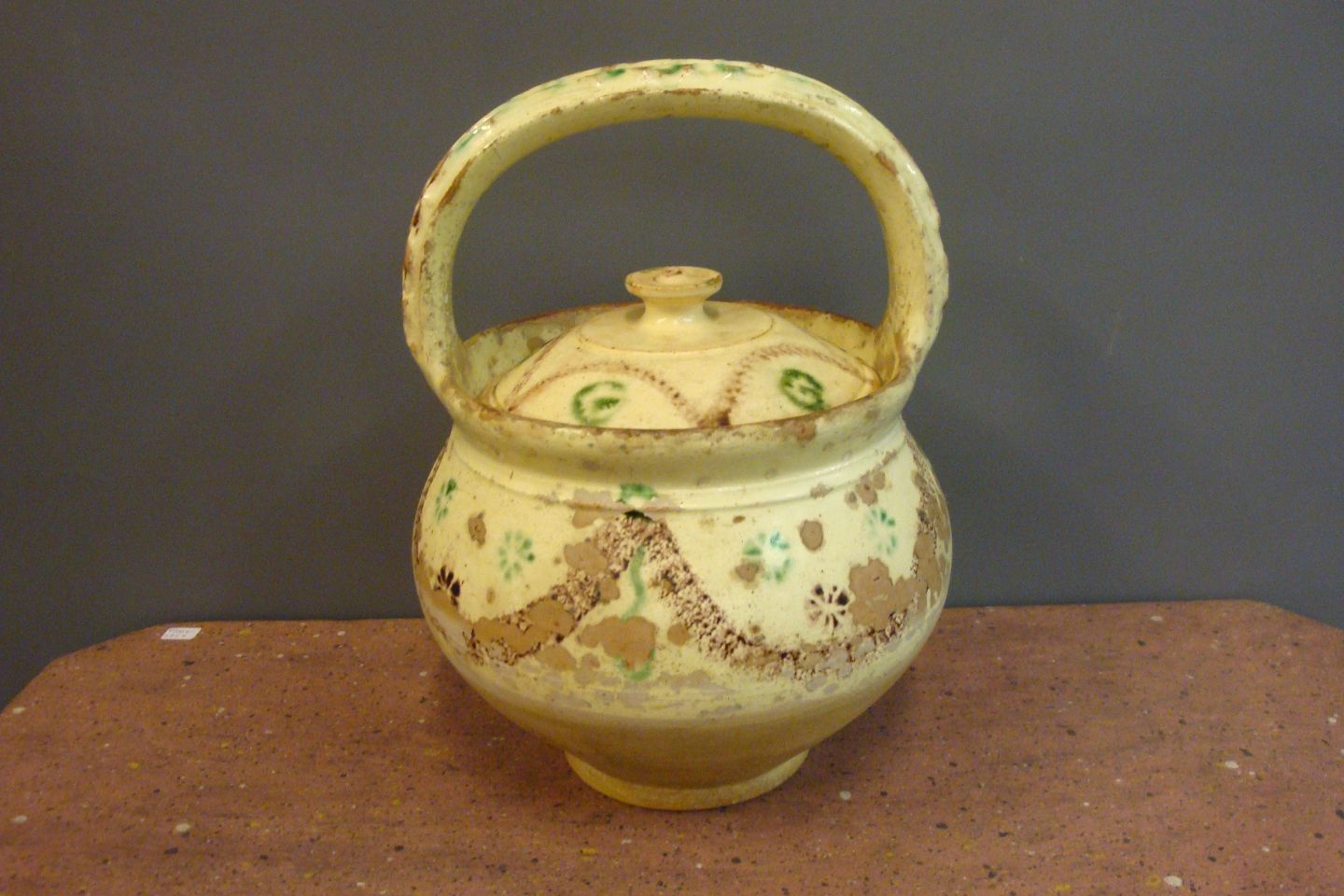 SoldOld maternity bucket in nice colors from around 1880.