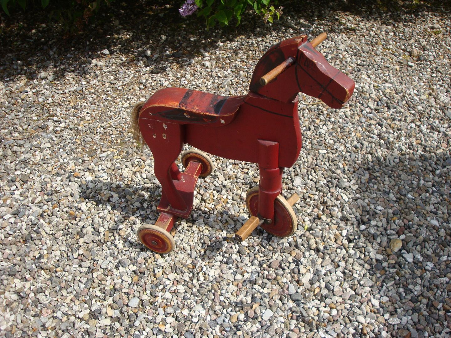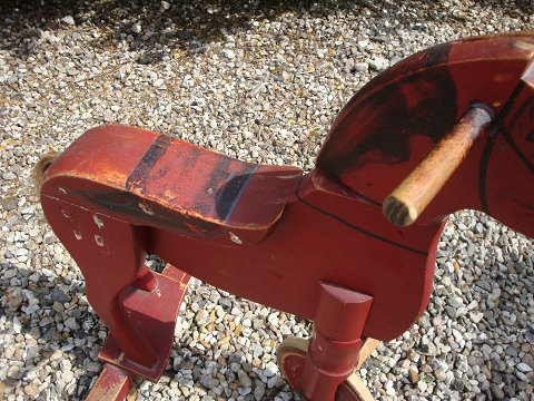 Three wheeled bike-horse in a reddish color and in good condition, from around 1930.