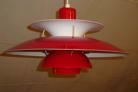 SoldPoul Henningsen PH5 ceiling lamp in fine red high polish. The lamp is in very good condition and is an exhibition model, for sale with certificate.