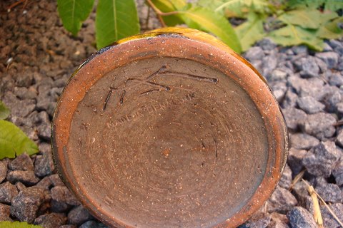 SoldVase by Hermann Kähler, two-tone in mustard yellow / brownish color.