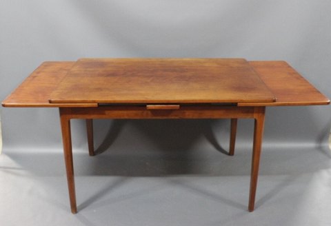 Dining table designed by Ole wancsher ,model 1761. Produced by Fritz Hansen. The table is from the 1960s and is in mahogany. The table measures 79cm in height, width and 84,5cm in length, without plates 124cm and with plates 230cm.