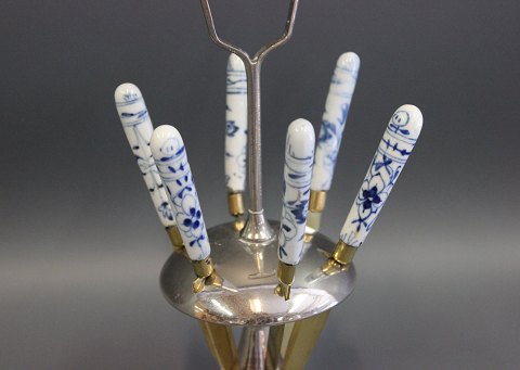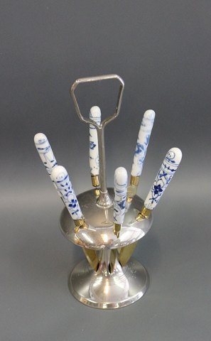 Forsølvet knivholder med 6 stk. messing frugtknive i løgmønstret.