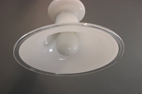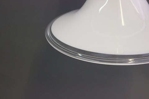 This lamp is one of the classics from Holmegaard, the lamp can easily be recognized by its clear glass edge on the bottom. In the middle of the lamp the glass has a "bubble". The model is made of mouth-blown opal glass, which gives a soft light. Because the lamp has been mouth-blown you won't find to lamps completely alike, which Means every lamp is Unique.