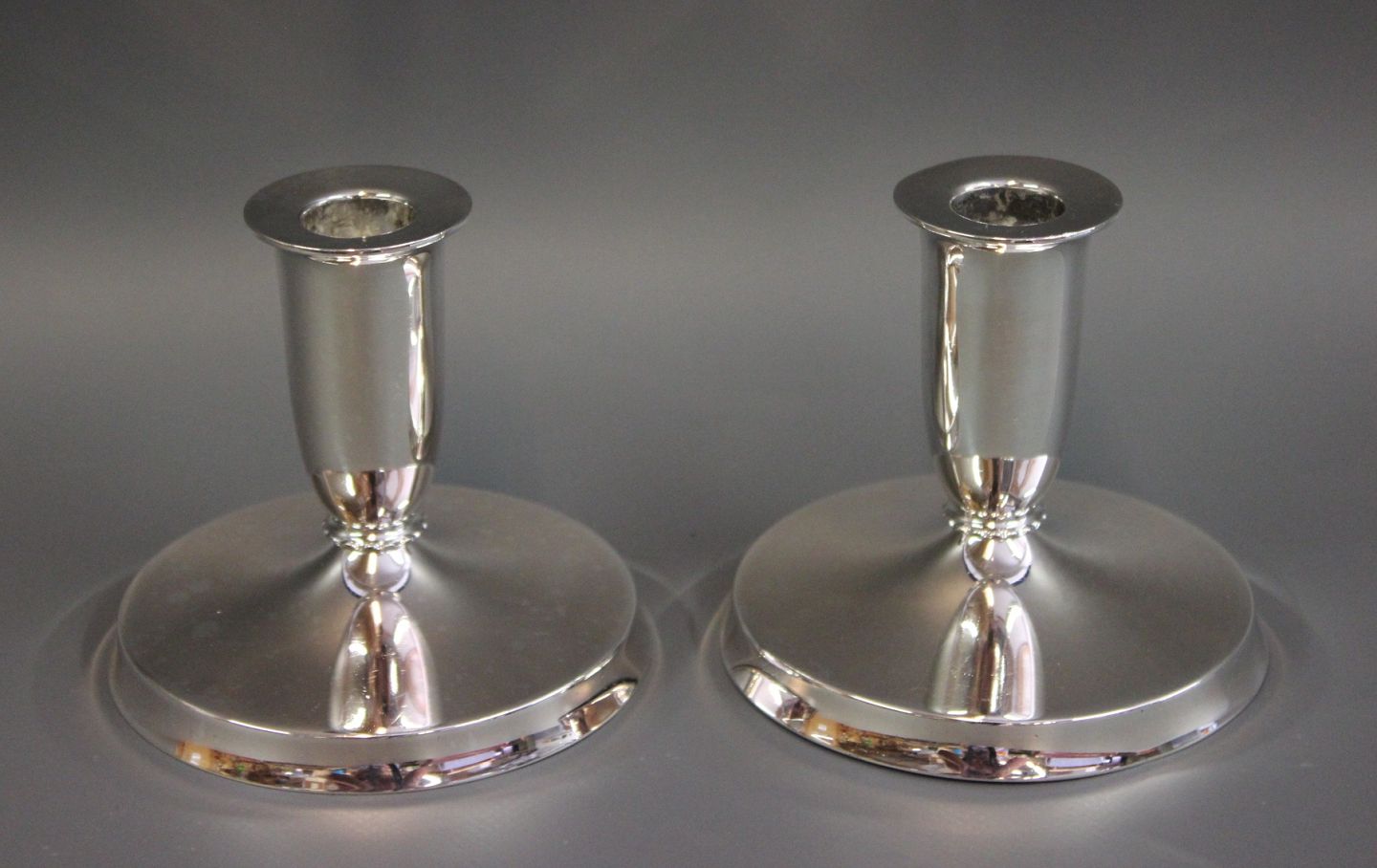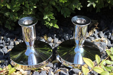 A pair of round candlesticks in 925 sterling, Denmark. The candlesticks are by Just Andersen and with the number 141.