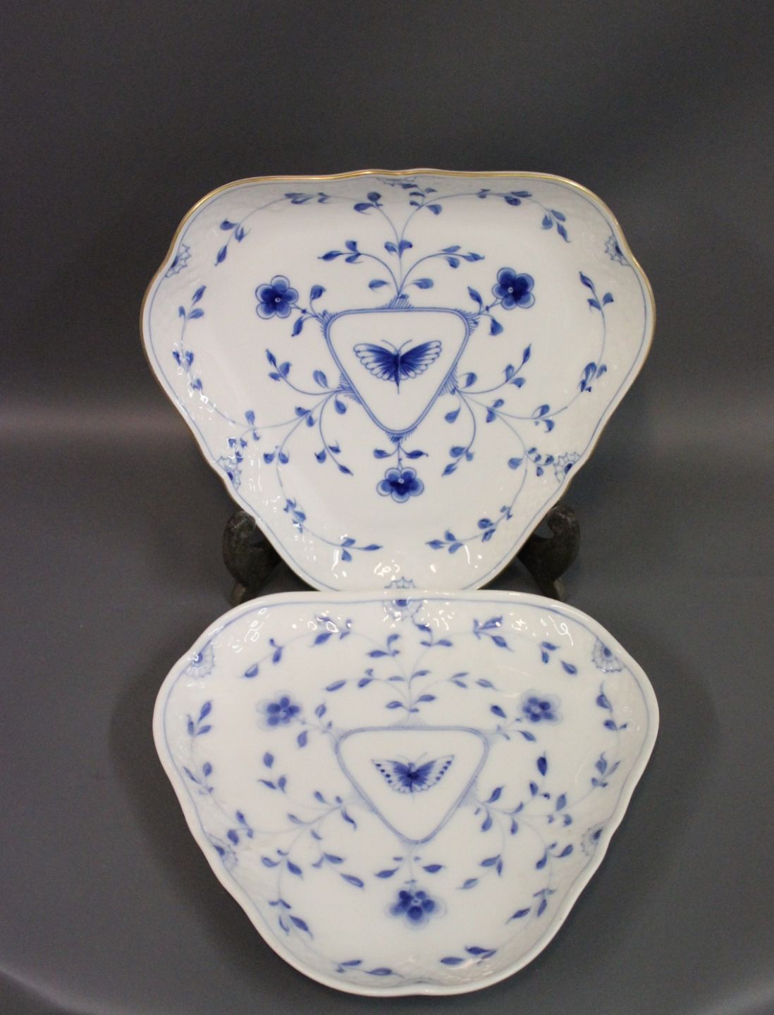 Triangular dishes with (from between 1962 and 1970) and without gilt edge (from between 1915 and 1947).
