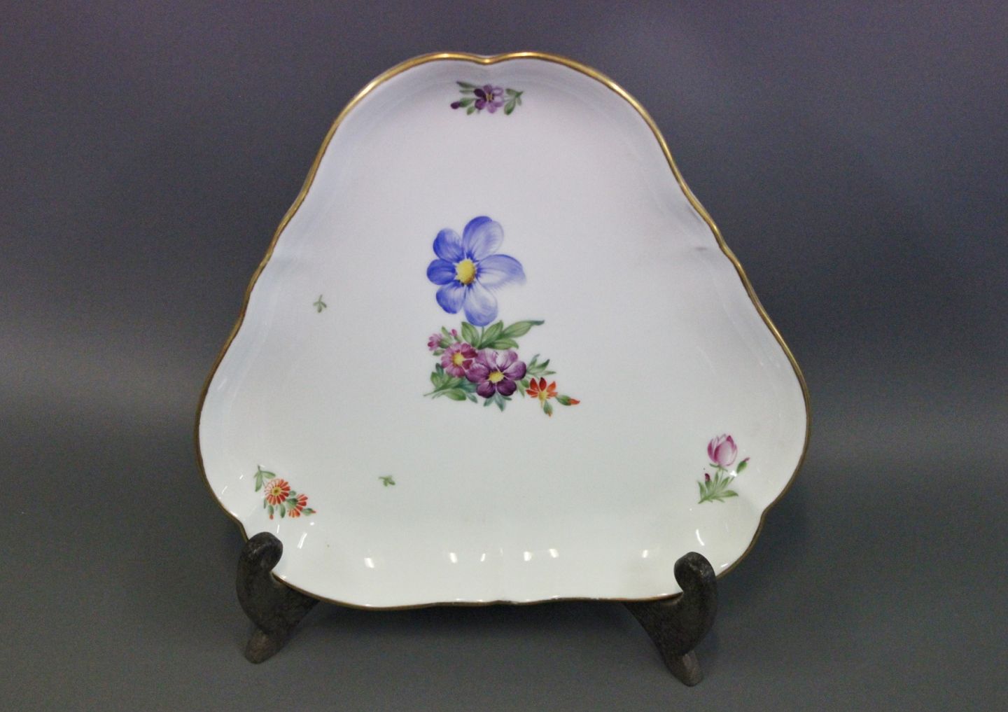 Royal Copenhagen saxon flower, triangular dish, no. 9045. The dish was made in 1938.