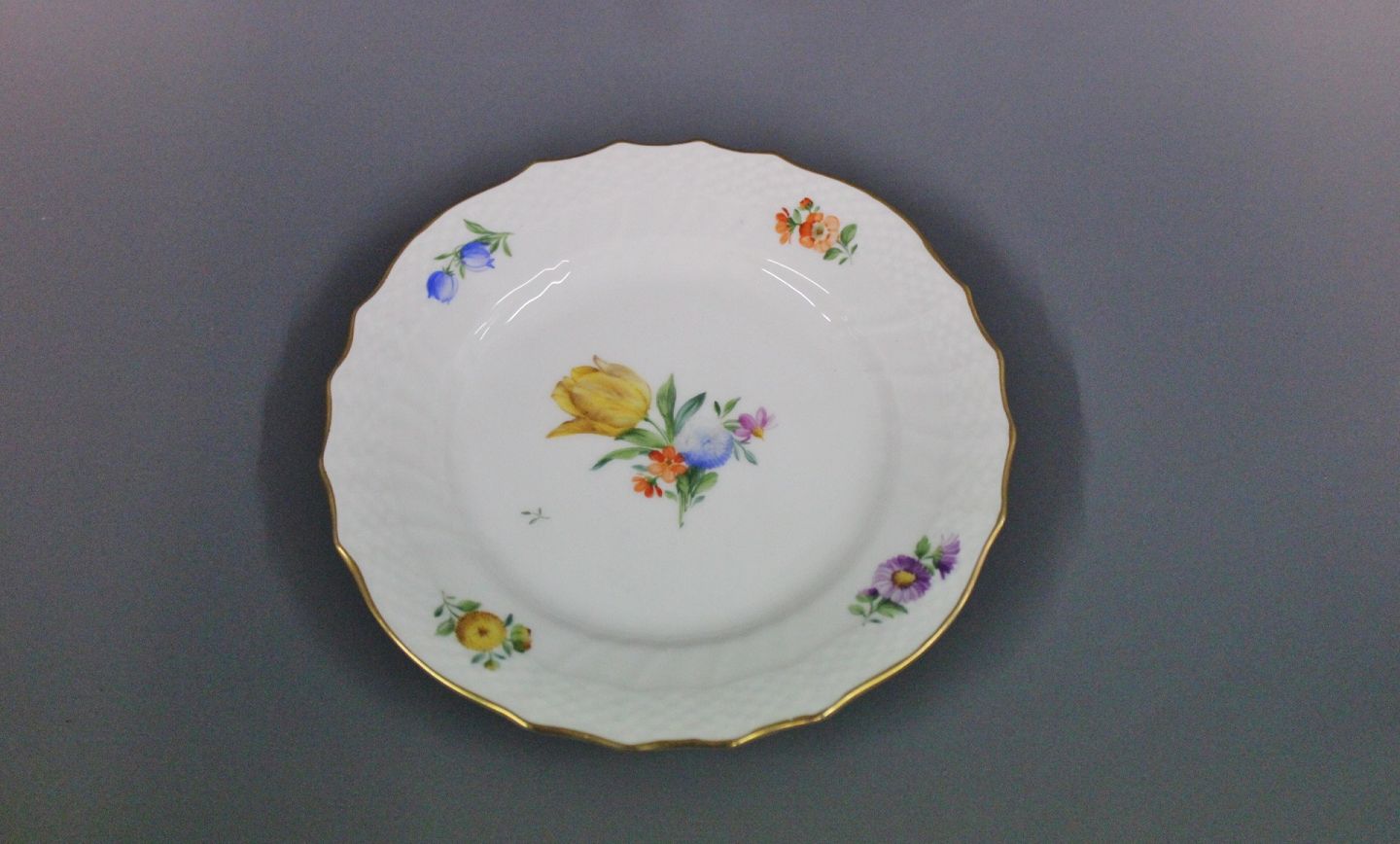 Kongeligt porcelæn saksisk blomst. Lille tallerken som er lavet i 1962.