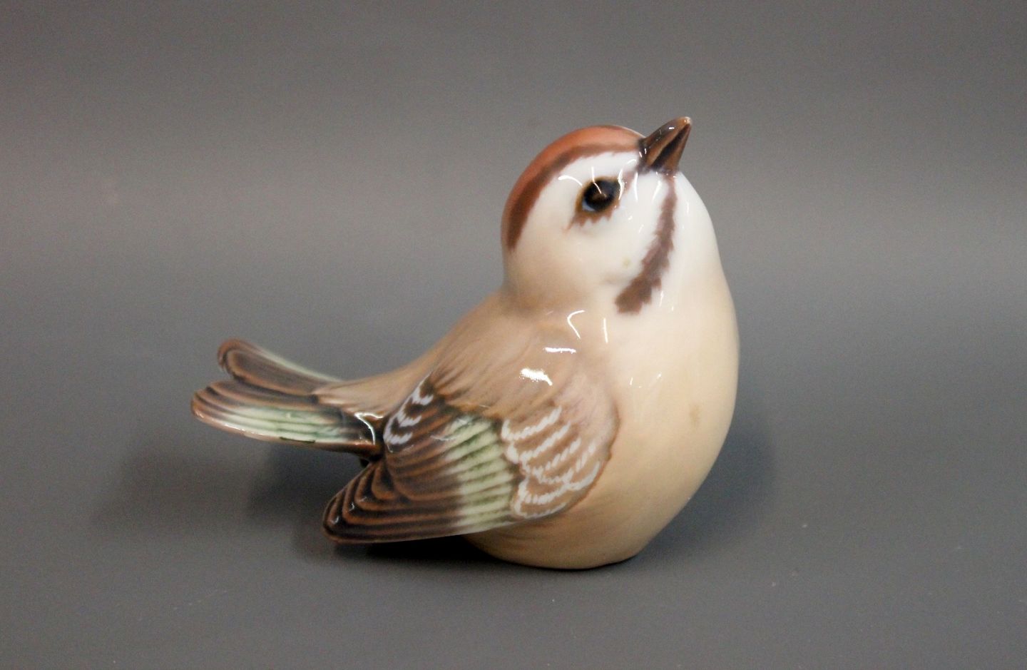 SoldDahl Jensen porcelain figurine, Goldcrest no. 1250. The figurine is stamped with a royal Crown and DJ Copenhagen.
