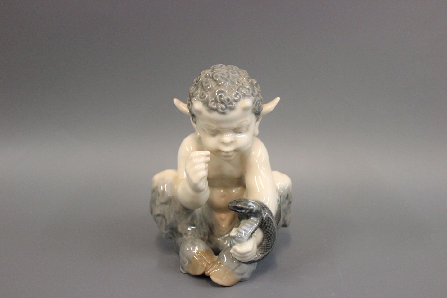 SoldRoyal Copenhagen porcelain figurine, Faun with snake, no. 1712. The figurine is from 1962 and designed by Chr. Thomsen.