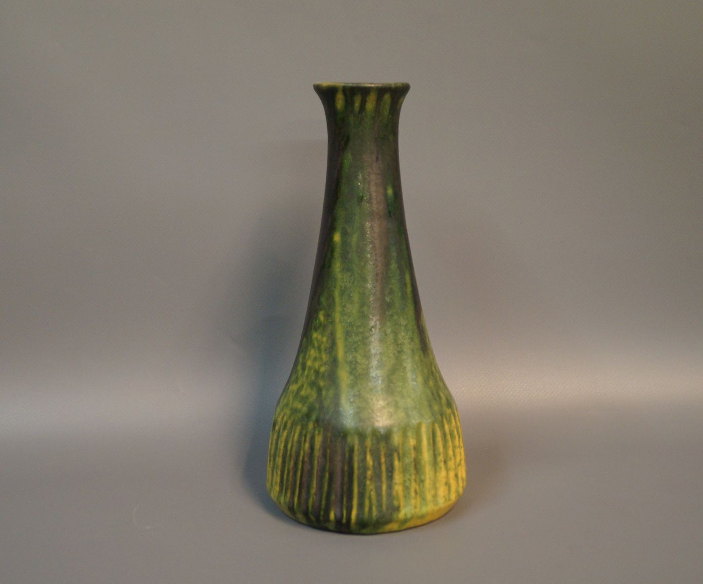 Ceramic vase in green and yellow from the 1960s, signed Ernst.