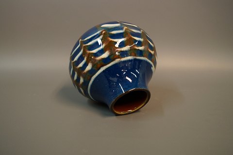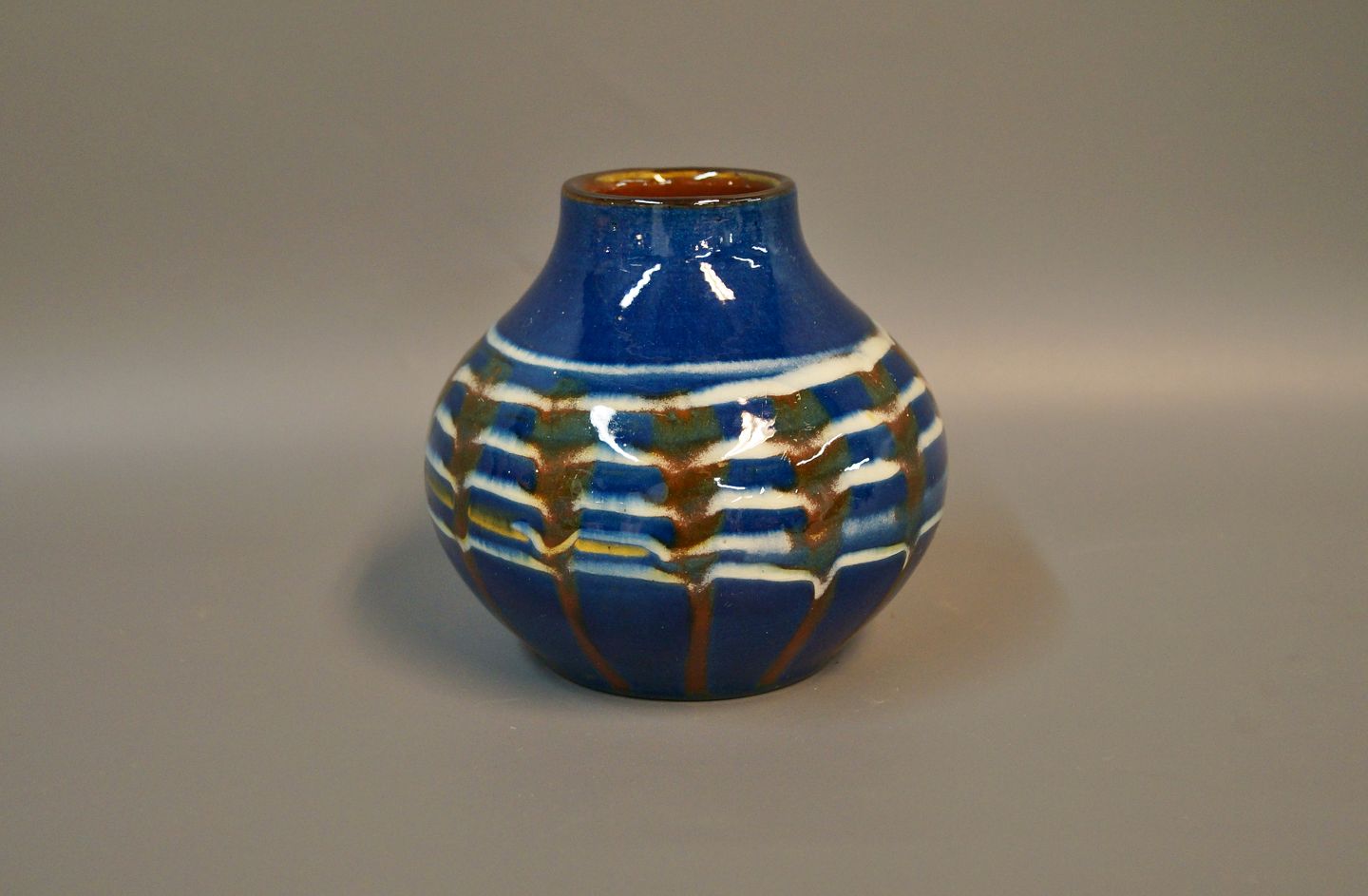 Ceramic vase with dark blue, White and Brown glaze from the 1960s by an unknown ceramic artist.