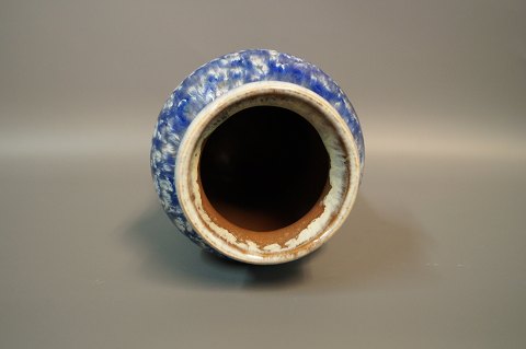 Ceramic vase with light blue and White glaze from Strehla - GDR with the number 1437.