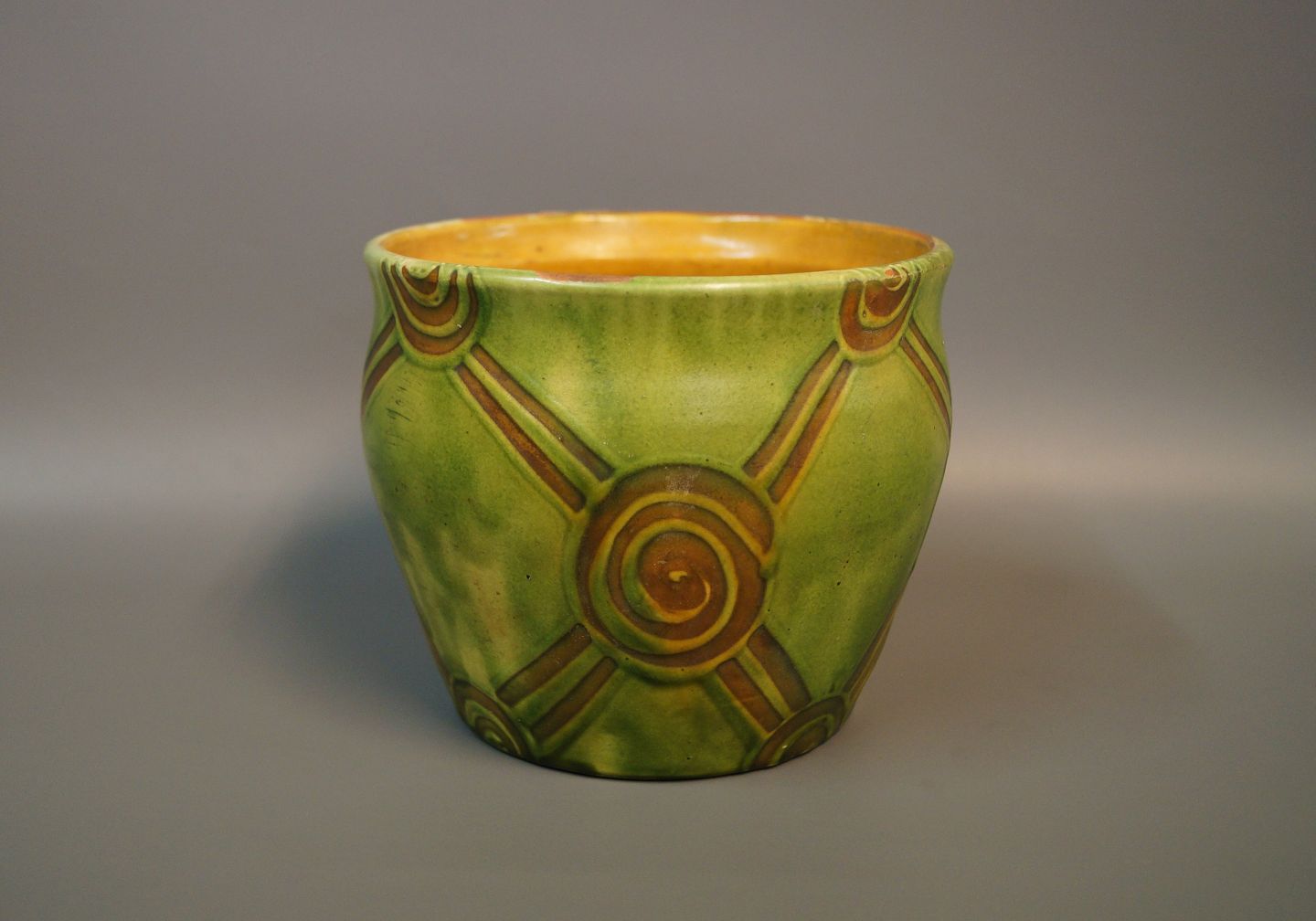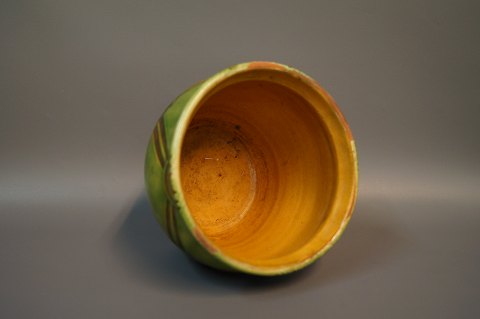 Keramik vase med grøn glasur og mønster på siderne fra 1960erne af Herman A. Kähler.