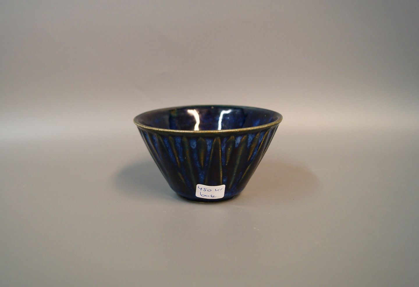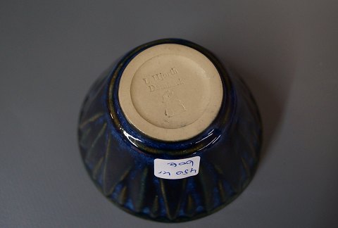 Keramik vase med mørkeblå glasur af L. Hjort Danmark.