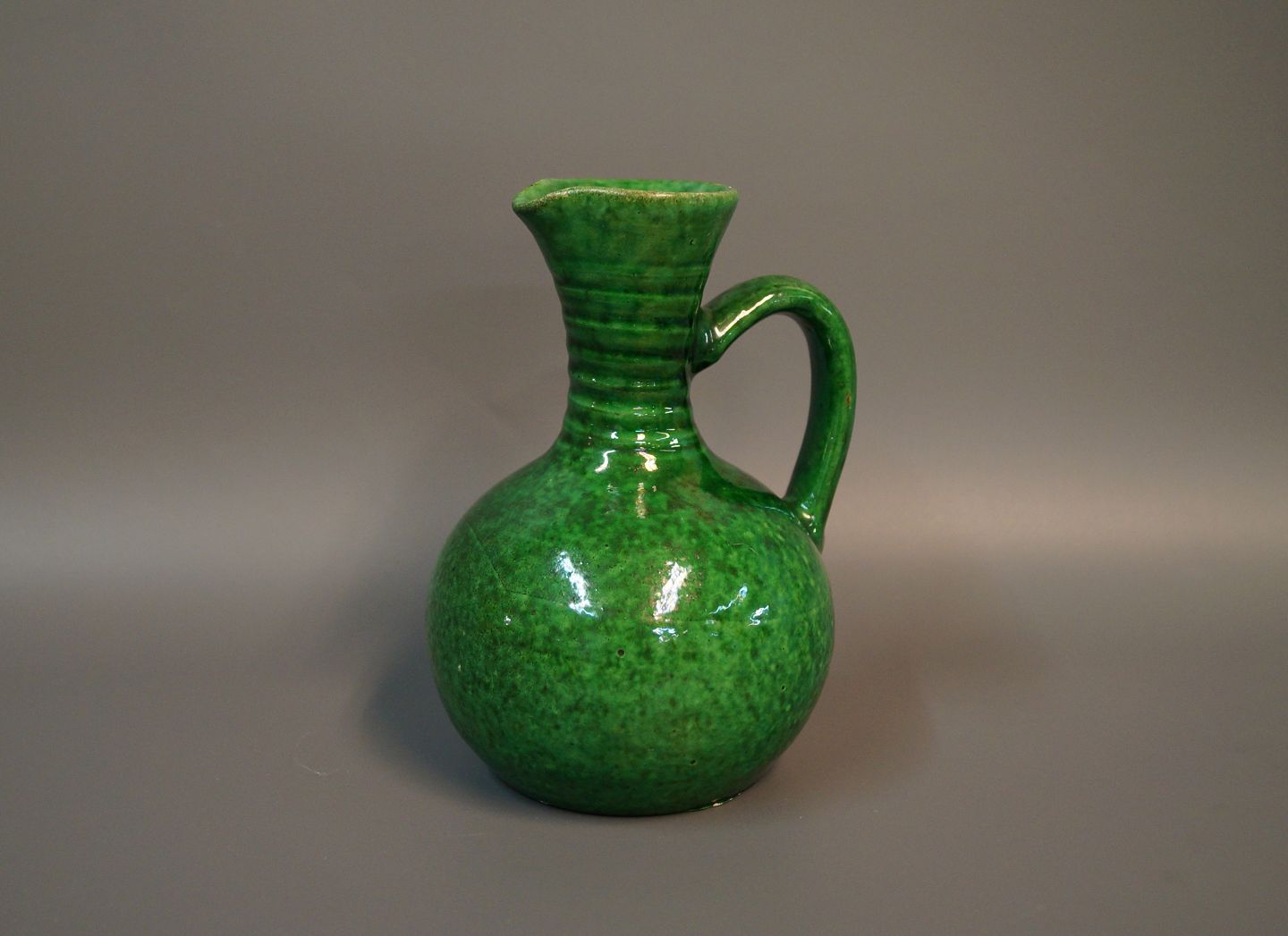 SoldCeramic jug with green glaze from the 1960s by an unknow ceramic artist.