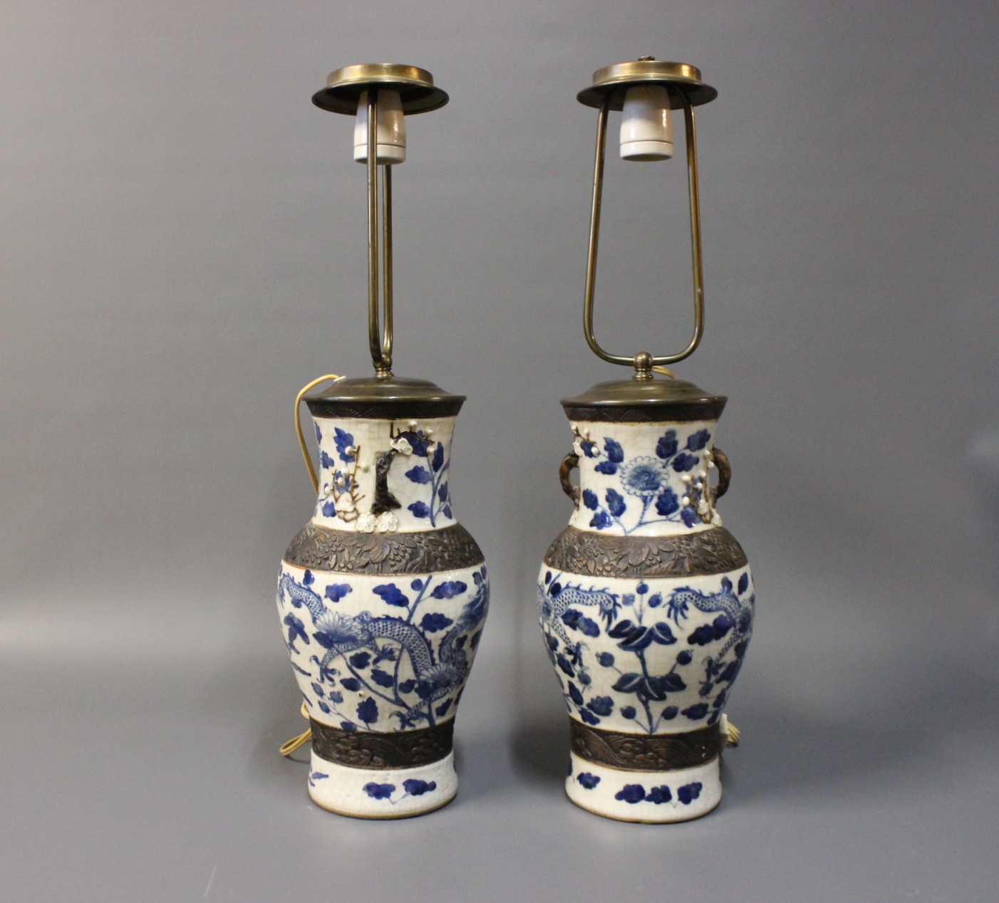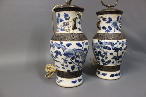 SoldA pair of Chineese porcelain table lamps from around the 1920s. The table lamps are beautifully painted and stamped with a chineese stamp on the bottom.