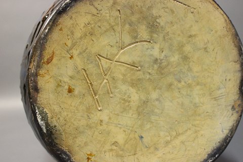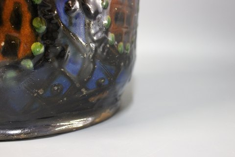 SoldLarge ceramic floor vase in beautiful dark colours by Herman A. Kähler. The vase is from the 1930s.