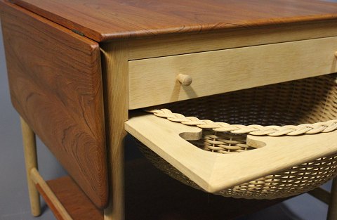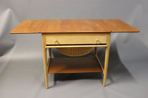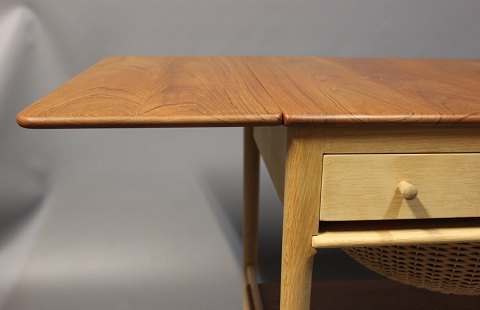 SoldSewing table in oak and teak designed by Hans J. Wegner in 1950 and manufactured by Andreas Tuck in the 1950s. The table is in excellent condition.