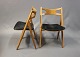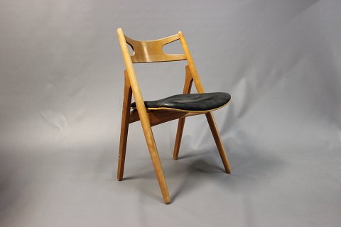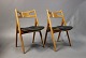 A pair of "Sawbench" dining room chairs in polished beech and suede, model CH29.