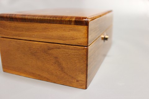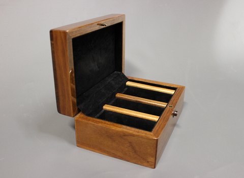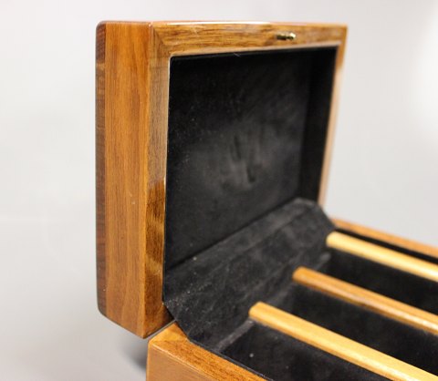 Ur Kasse i poleret mahogni med fløjl indvendig.