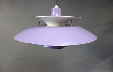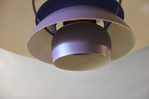 PH5 pendant designed by Poul Henningsen in 1958 and manufactured by Louis Poulsen. The pendant has purple lacquered metal Shades.