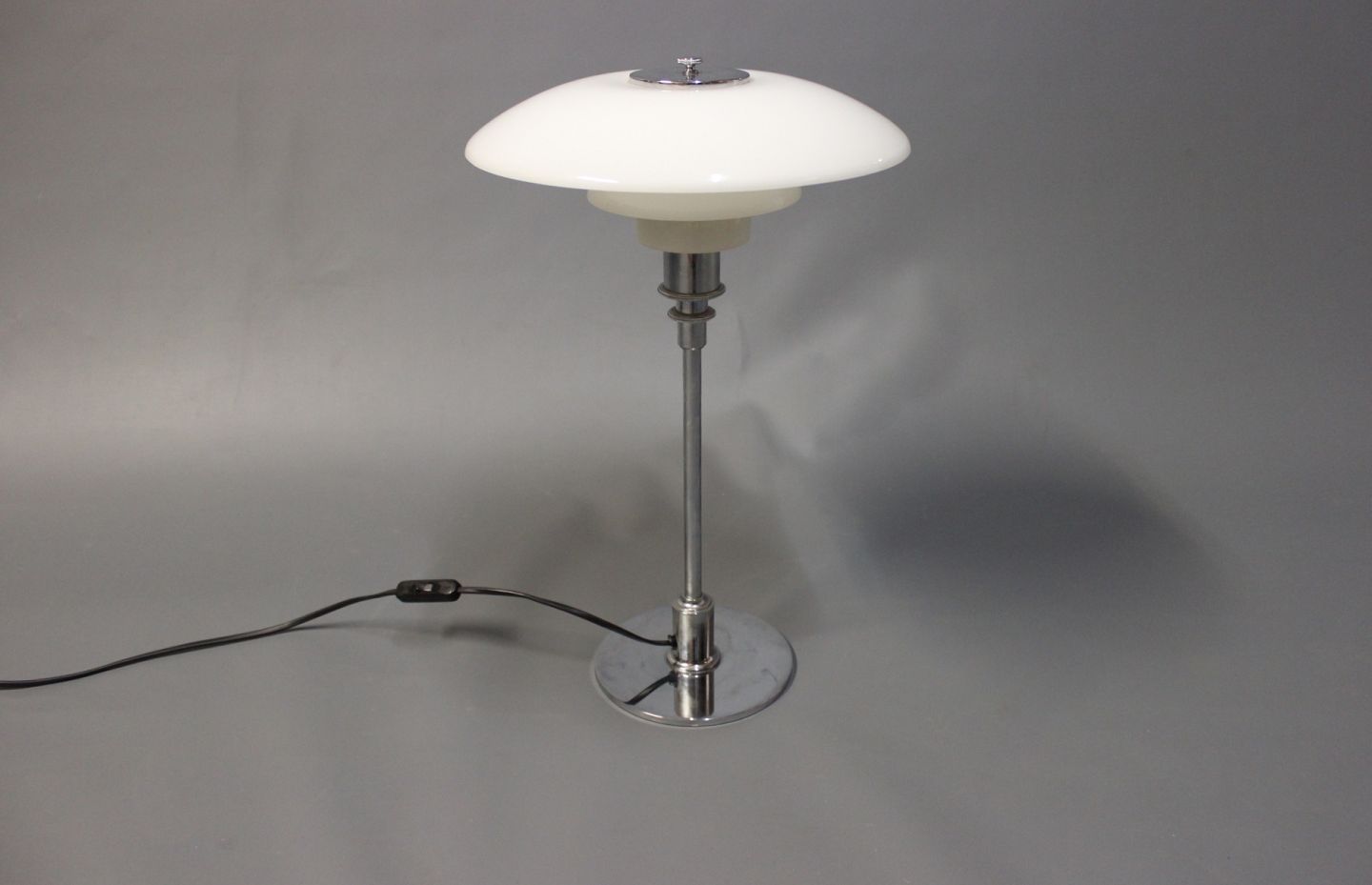 PH 3/2 bordlampe som den er i dag blev designet i 1999, men stilen er fra 1930erne, af Poul Henningsen og fremstillet hos Louis Poulsen.