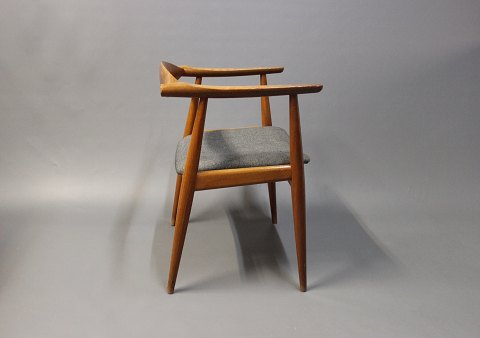 2 CH-35 chairs designed by Hans J. Wegner in 1959 and manufactured by Carl Hansen & Søn. The chairs are in teak and upholstered in grey wool.
