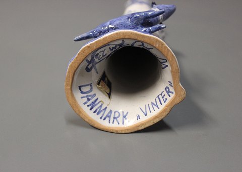 SoldCeramic figurine "Winter", M23, from the series "The four seasons" designed by Bjoern Wiinblad. This figurine is from 1970 and is decorated in blue and White colors.