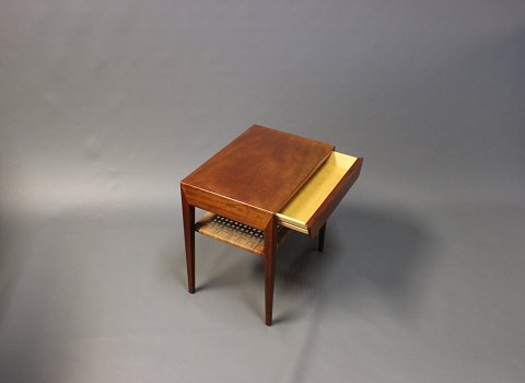 A pair of sidetables designed by Severin Hansen for Haslev Furniture Factory in the 1960s. The tables are in mahogany and cane beneath.