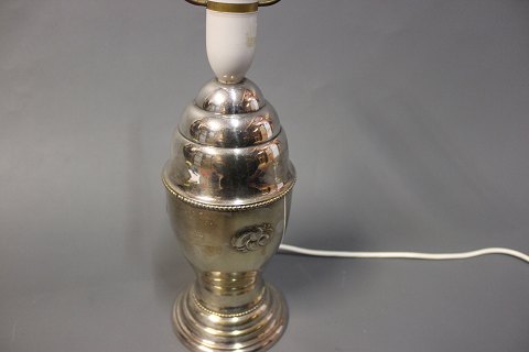 Silvered tablelamp in art noveau style. The lamp is from around the 1940s. New lampshade can be purchased for 300DKK.