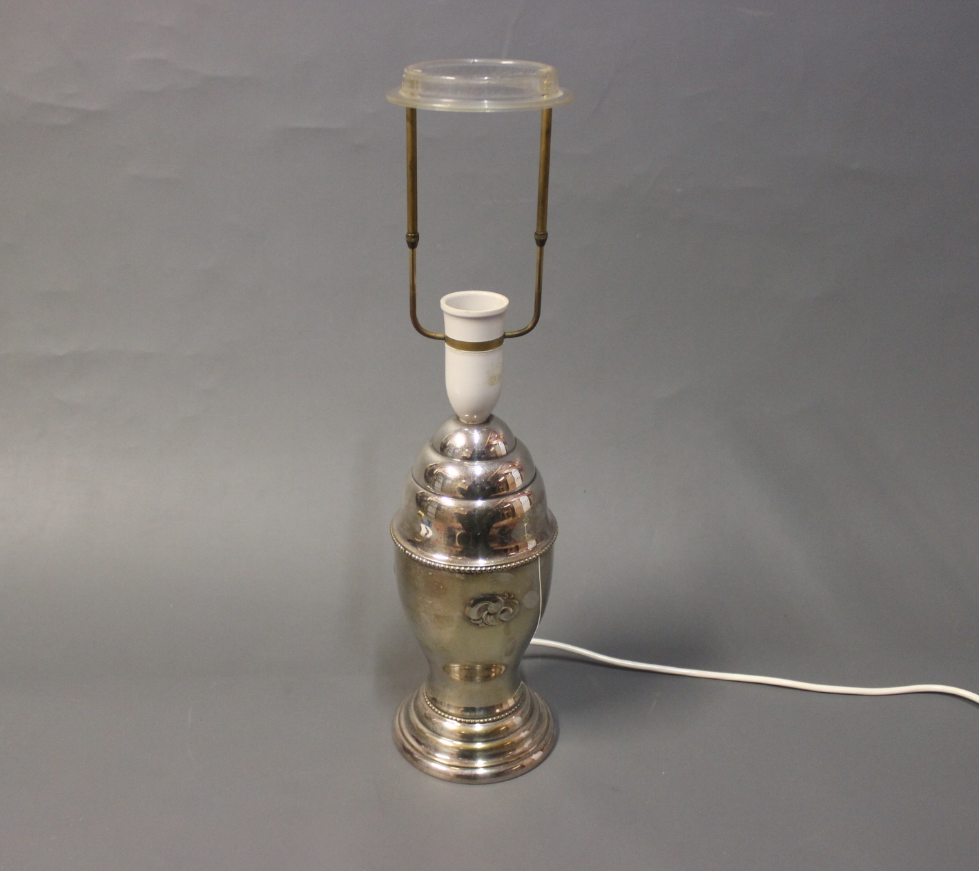 Silvered tablelamp in art noveau style. The lamp is from around the 1940s.