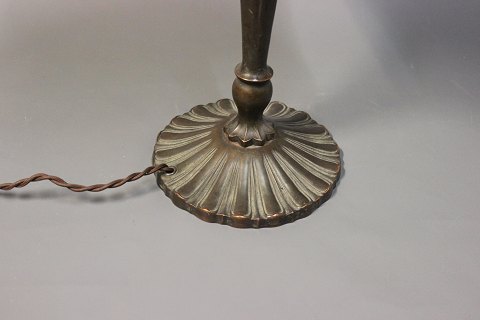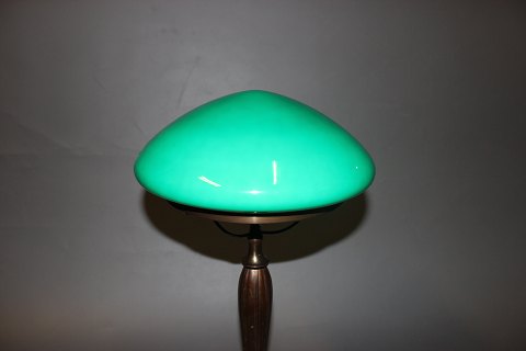 SoldTall tablelamp in burnished brass and dark green glass dome. The lamp is in Art Noveau style from the 1920s.