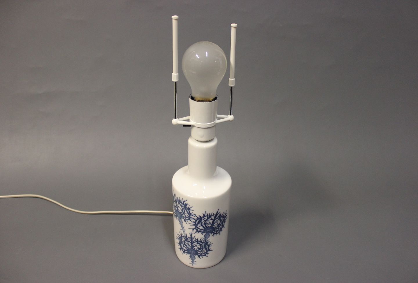 SoldRoyal Copenhagen tablelamp decorated with blue thistles. New lampshade can be purchased.
