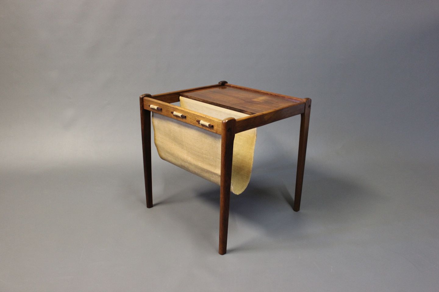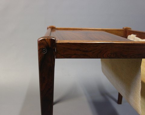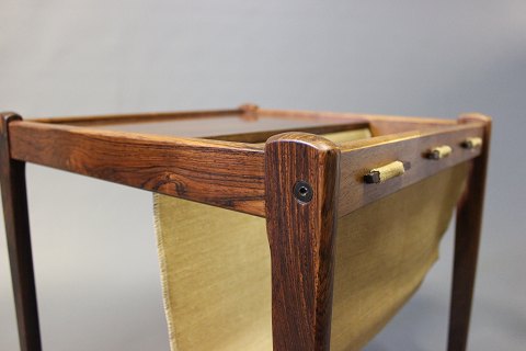 Small newspaper holder/lamp table i rosewood. The item is of Danish design from the 1960s.