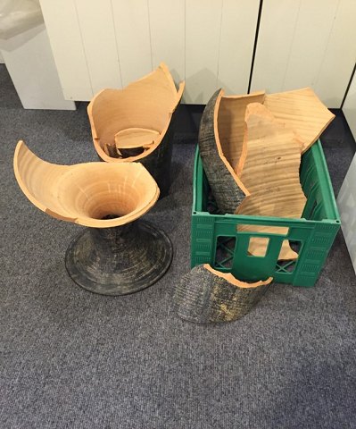 Large ceramic floor vase that we have repaired after it had been broken in several pieces.
