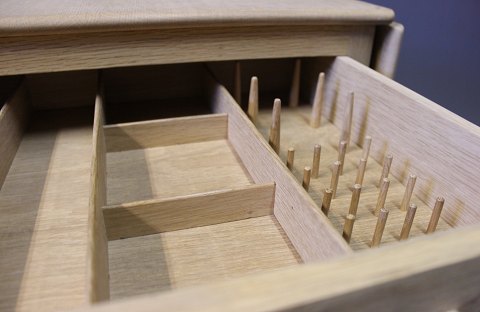 Sewing table in soap treated oak, model AT-33, designed by Hans J. Wegner in 1950 and manufactured by Andreas Tuck.
