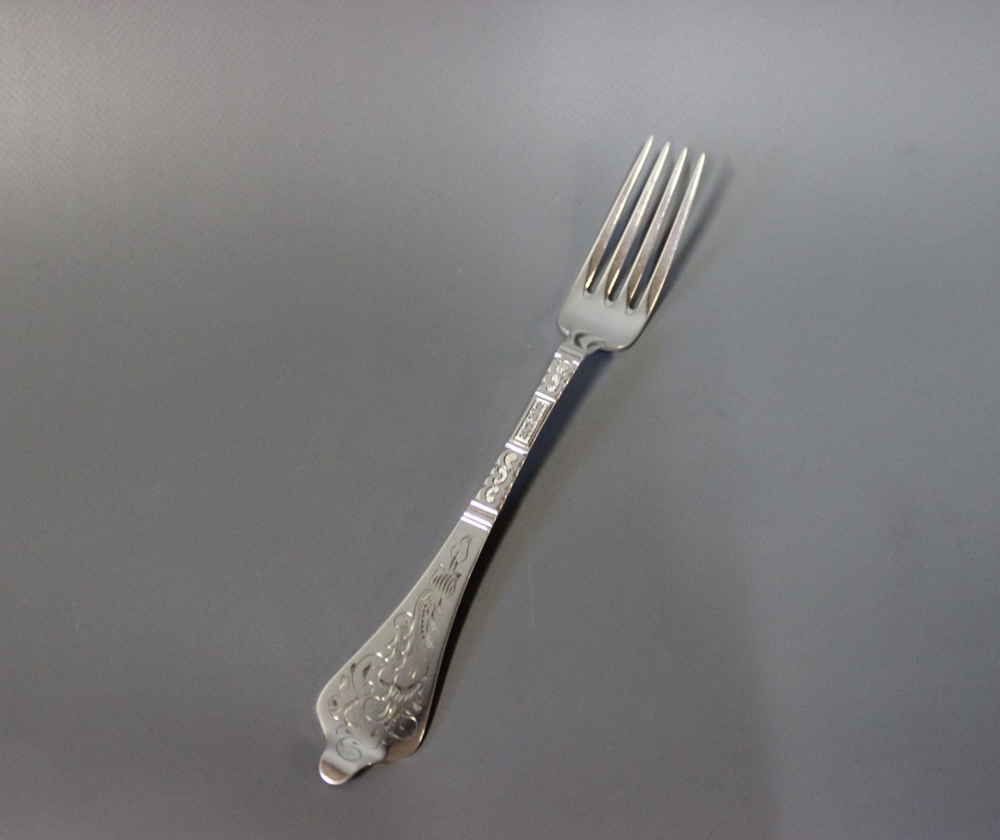 Middagsgaffel i Antik Rokoko, tretårnet sølv.
